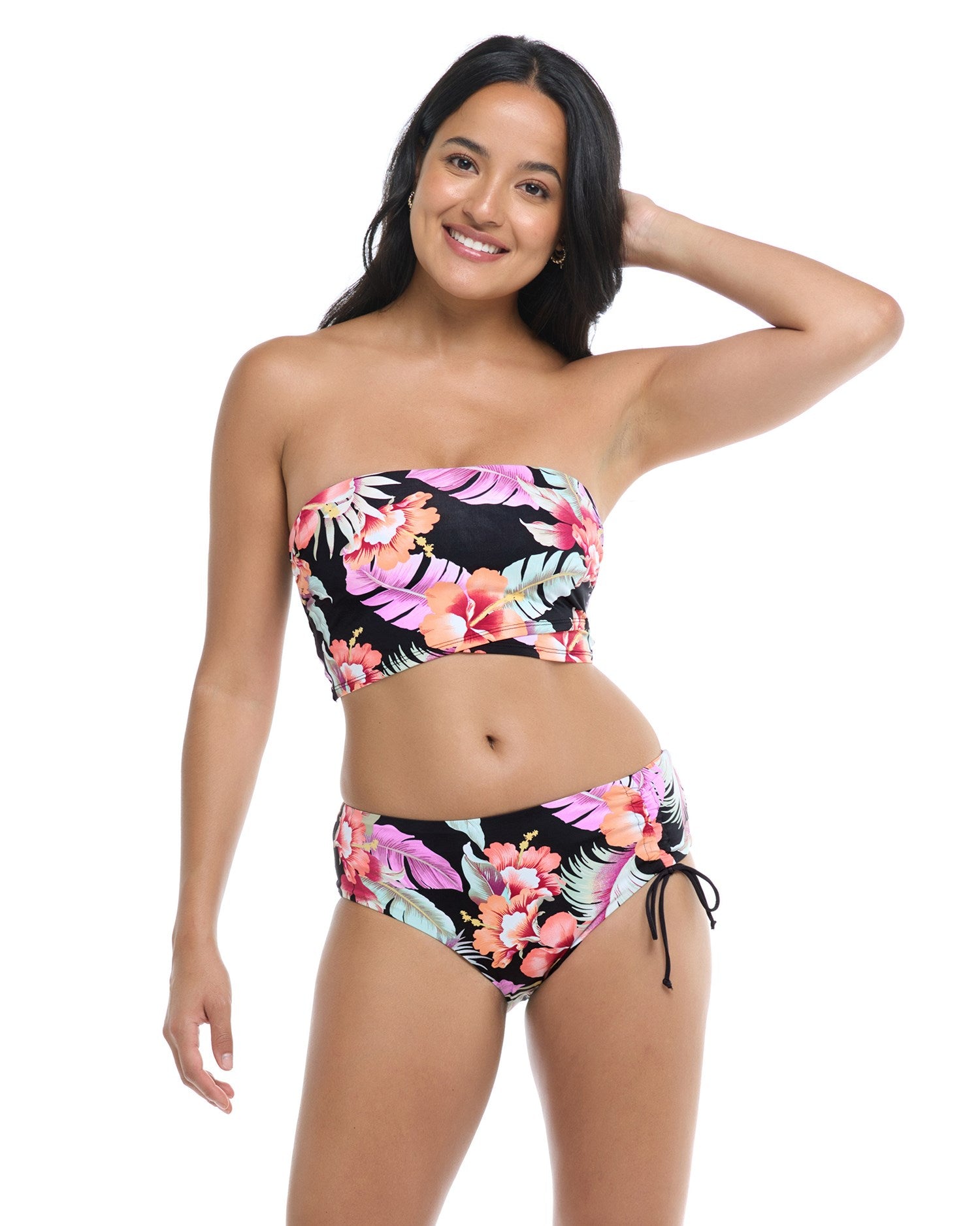 Vous flirtez avec l’idée d’ajouter un peu de piquant à votre tiroir de maillots? Ce motif floral romantique ne manquera pas de vous ravir. Sur un fond noir d’encre, une profusion de fleurs d’hibiscus et de feuilles somptueuses affichent une palette de couleurs d’inspiration vintage. En regardant attentivement, vous remarquerez que chaque pétale semble luire, comme si la lune, que l’on ne voit pas, le baignait d’une douce lueur. Enfilez notre collection Flirt et plongez dans un univers de pur luxe.