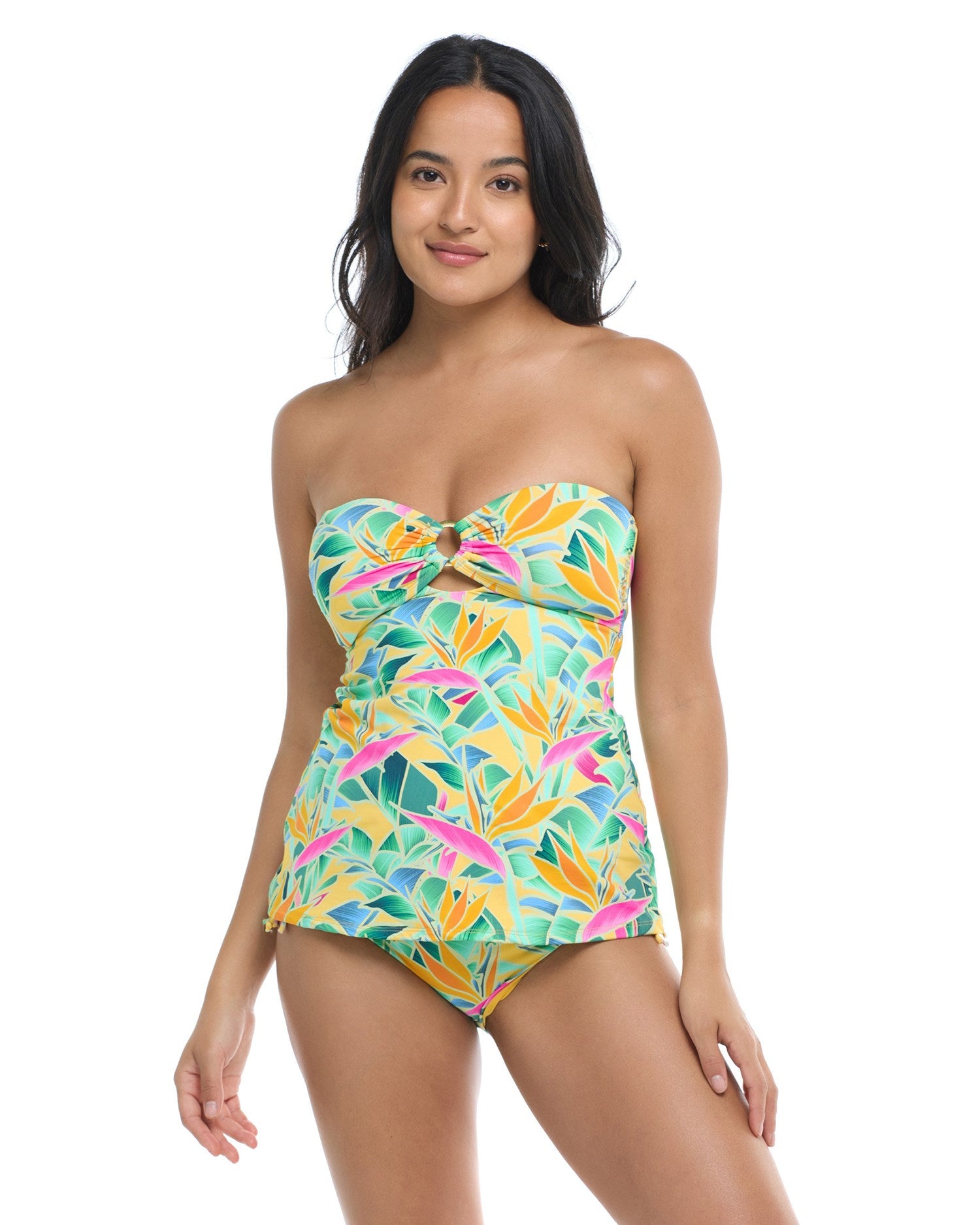 Offrez à votre sélection de maillots un traitement royal avec Diana, un tankini seyant pour celles qui recherchent un maillot un peu plus couvrant. Chacun de ses éléments intégrés est conçu pour épouser votre silhouette et mettre en valeur votre buste, notamment des bonnets souples à coussinet amovible, un soutien-gorge préformé, une bande amovible se nouant à la nuque, un devant en tissu Power Mesh et des baleines latérales.
