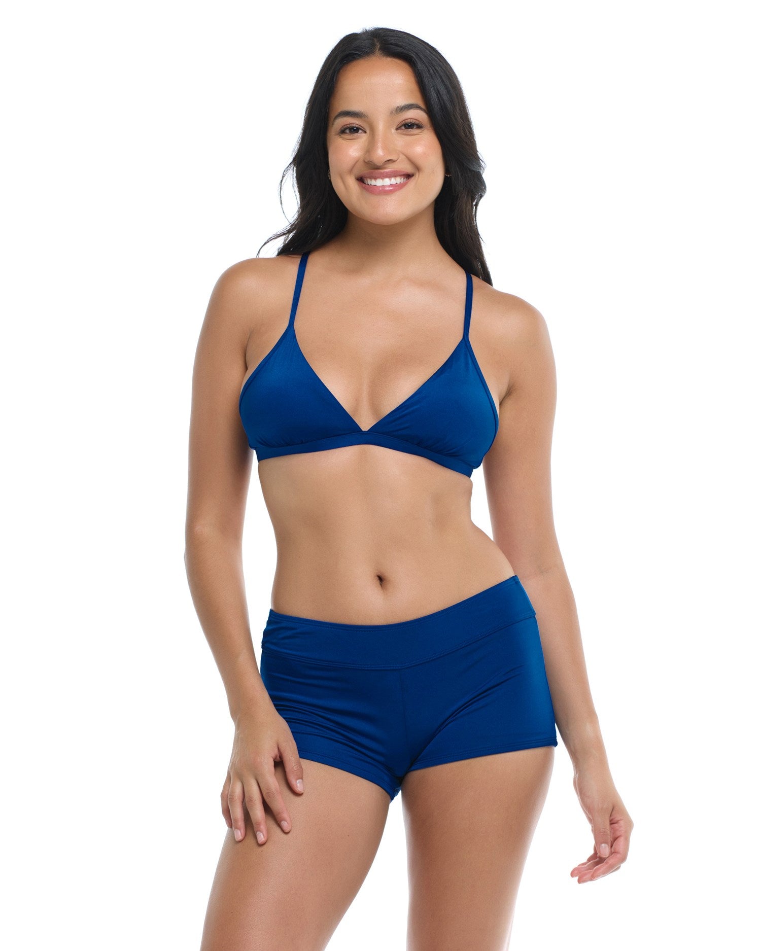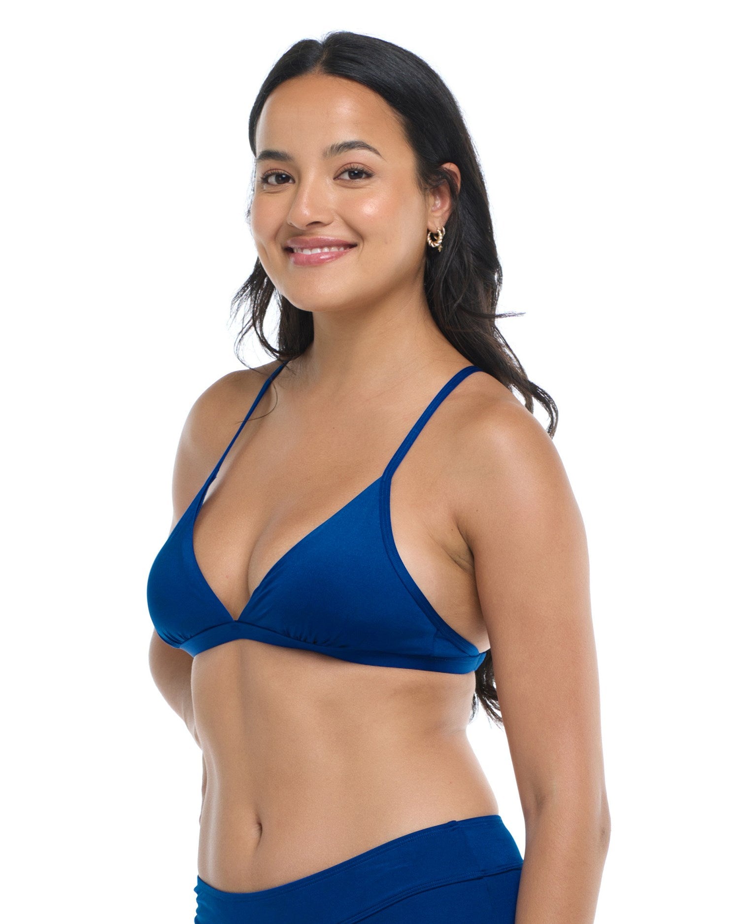 Le modèle Jayme est un haut triangle intemporel que vous voudrez porter saison après saison. Son superbe tissu lustré vous assure le glamour parfait. Personnalisez ce modèle grâce à des bonnets souples à coussinet amovible, des bretelles réglables et des cordons s’attachant de deux façons au dos.