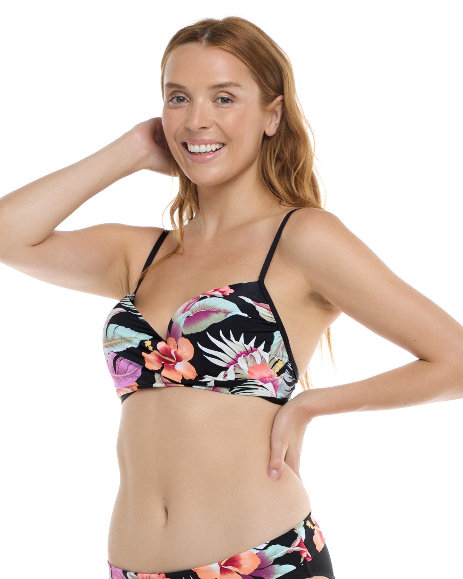 Le modèle Liz est un élégant haut de bikini à armatures et bonnets moulés, aussi chic que confo. Agrémenté d’un effet drapé à la poitrine lui donnant un look raffiné, ce haut est doté de bretelles amovibles, de bonnets pigeonnants à coussinet amovible et d’un fermoir à agrafes 3 positions au dos pour un ajustement sur mesure.