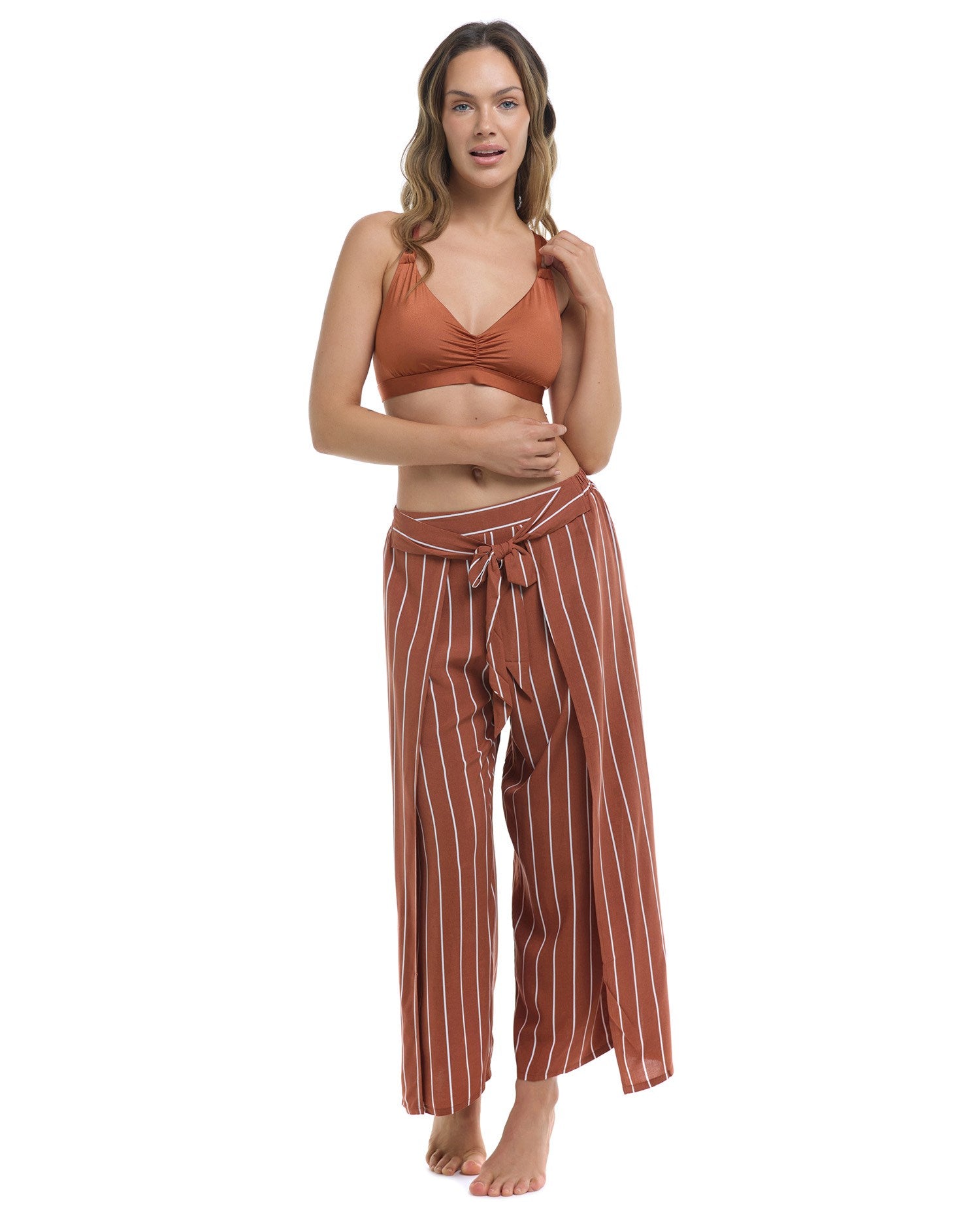 Adoptez la tendance de la jupe-culotte courte avec notre pantalon Paige. Parfait pour les journées chaudes, ce pantalon en rayonne légère présente une taille élastique facile à porter, une jolie ceinture nouée décorative et une longueur trois-quarts. Prochain arrêt : le paradis.