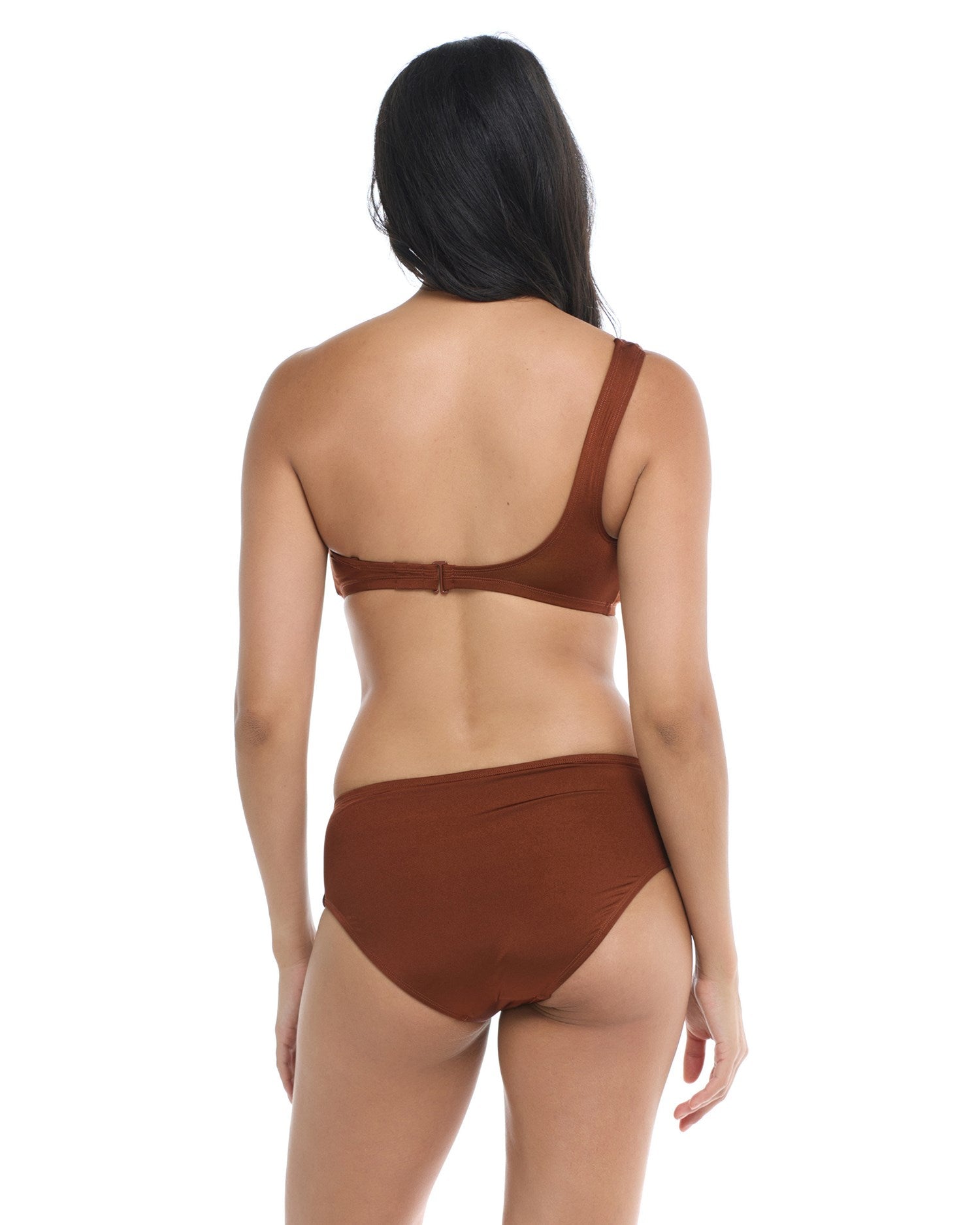 A trendy cinch detail at the hip makes our Alessia bottom one-of-a-kind. Designed with a flattering higher rise, front power mesh for shaping, and luxe shiny fabric, this piece is a bombshell moment in the making. Enjoy fuller coverage for your booty and adjust the cinch to max out your comfort.
