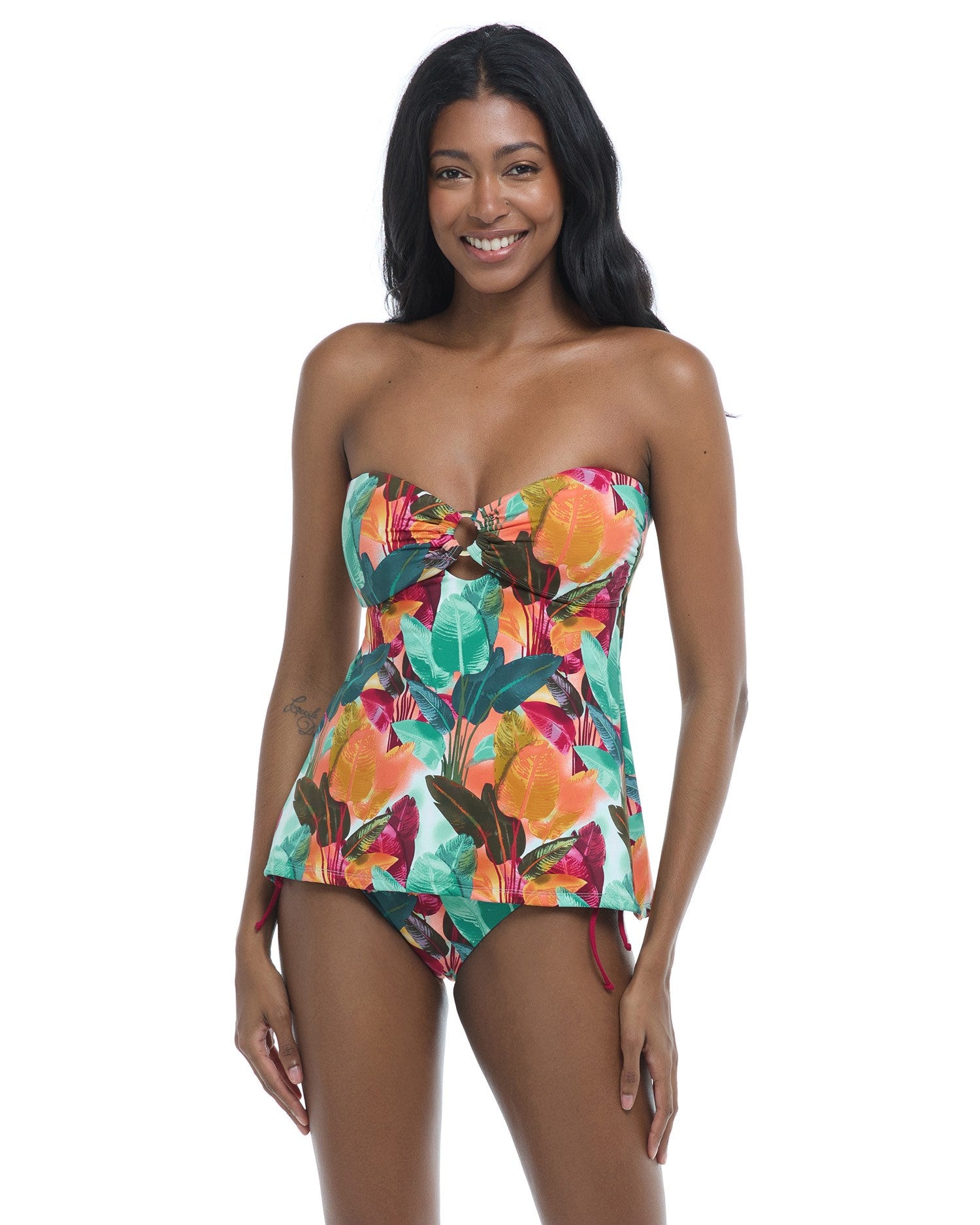Give your swim drawer a royal upgrade with Diana, a flattering tankini for ladies seeking a little more coverage. Each one of its integrated elements is designed to fit your form and flatter your bust, including removable molded cups, a contour shelf bra, a removable front neck sash, front power mesh, and side boning.