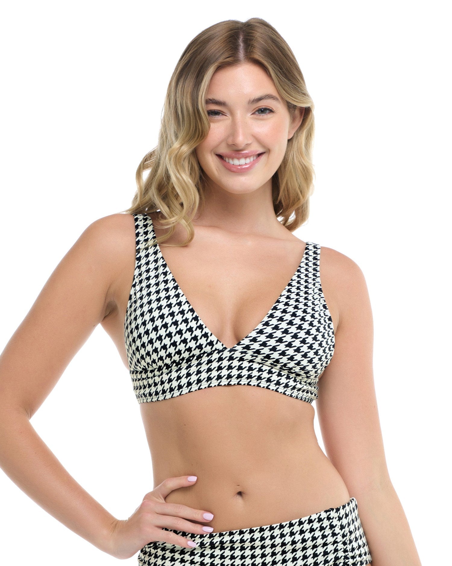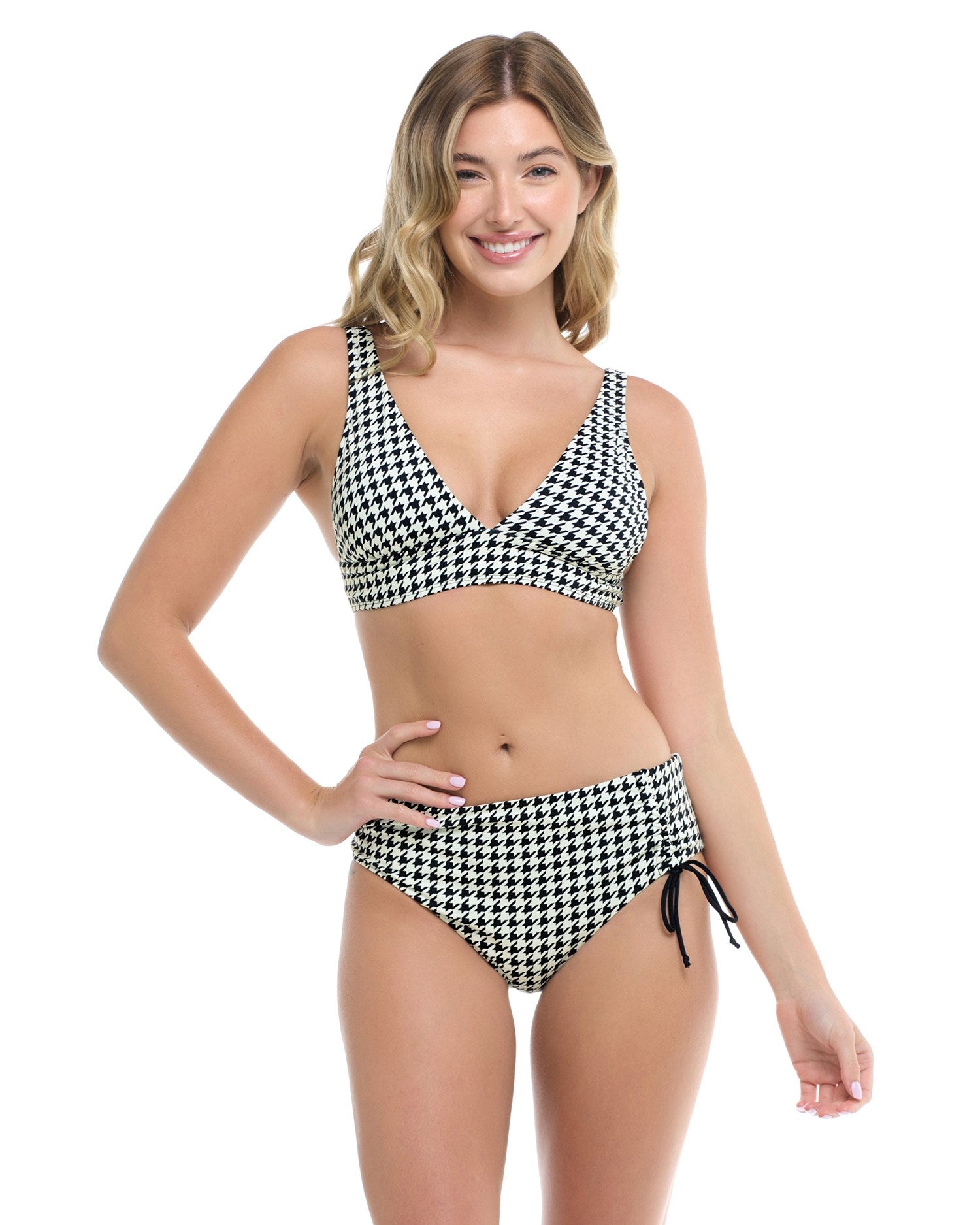 Irresistible charm, spellbinding symmetry: this timeless houndstooth print deserves a spot in everyone’s swim drawer. With humble roots tracing back to shepherds’ clothing in the Scottish Lowlands, houndstooth has since become a high-fashion sweetheart, finding its way into contemporary runway collections from Dior to McQueen. Our Enchantment collection pulls this classic angular print into the world of swim, so you can look straight out of a magazine as you strut from beachfront to boardwalk.