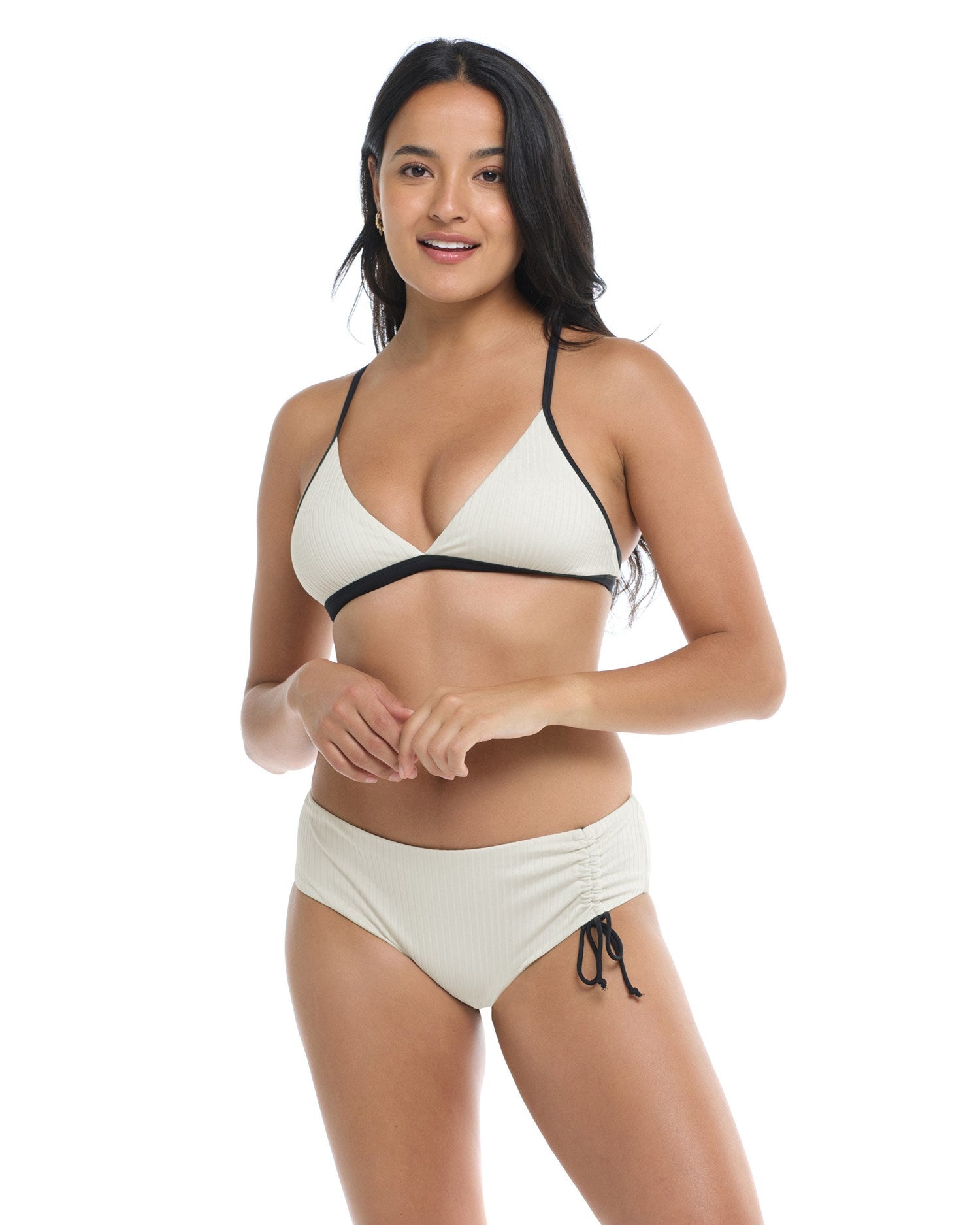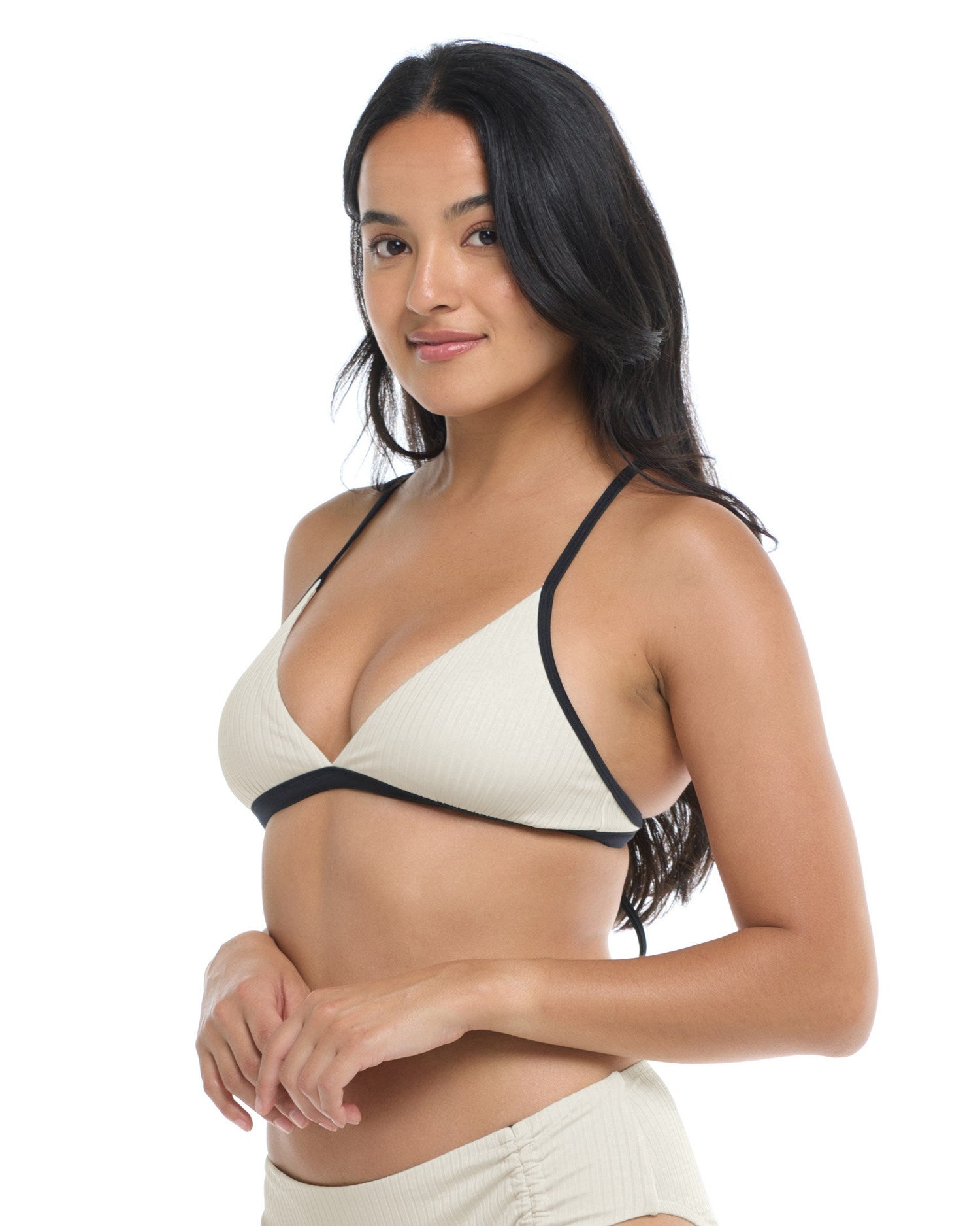 The Jayme is a totally timeless triangle you’ll love to wear over and over again. Keep things luxe with its eye-catching ribbed fabric and make this style your own with removable soft cups, adjustable straps, and a 2-way tie back.