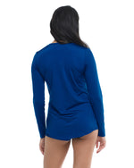 Extend your fun in the sun with Kayleen, a protective shirt designed to send UV rays packing. Its simple long-sleeve loose-fitting design suits anyone and everyone, with a cute shiny fabric that jazzes up its minimalist silhouette.