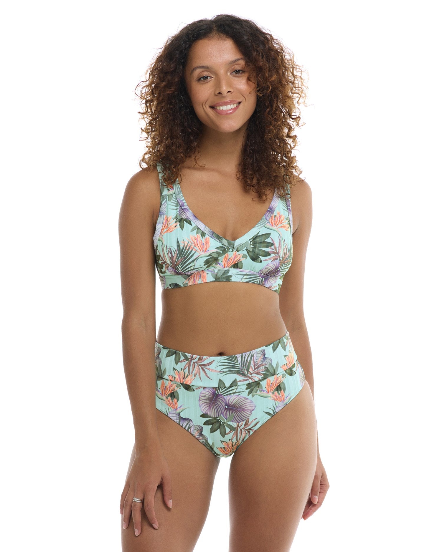 Give your silhouette the royal treatment with Rachel, a high-waisted bottom with a high-cut leg and comfy wide waistband. This ribbed fabric piece also provides mid coverage around back, so you can stay carefree from sun-up ’til sundown.