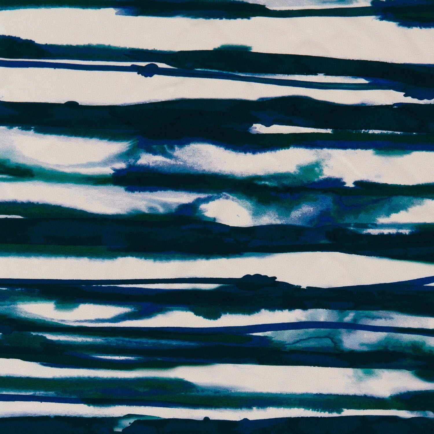 The ocean is in a state of perpetual transition. What starts as calm water slowly builds into a swell, finally reaching a crescendo as it crashes against the shore. Then, the tide crawls back towards the horizon and restarts the cycle. Inspired by continuous movement, our Transition collection’s watercolor stripe pattern mirrors the relentless pace of the sea. Its palette flows from pure white to vivid turquoise and finally midnight blue – then, like the endless tide, it loops back on itself and begins again.