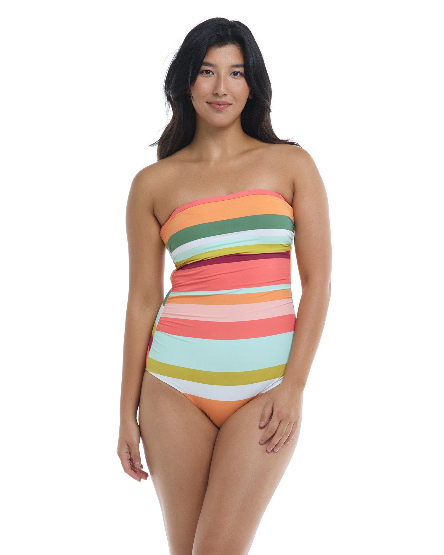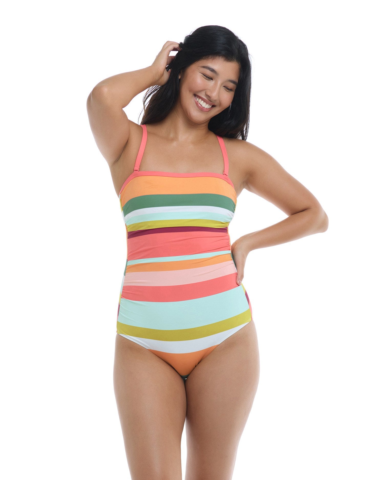 With a silhouette that’s fit for yachting, Ziah is bombshell-approved. On the inside, it’s designed with removable soft cups and a shelf bra to keep everything in its right place. On the outside, its side shirring adds a pop of texture, with full coverage around back for easy, breezy wear.